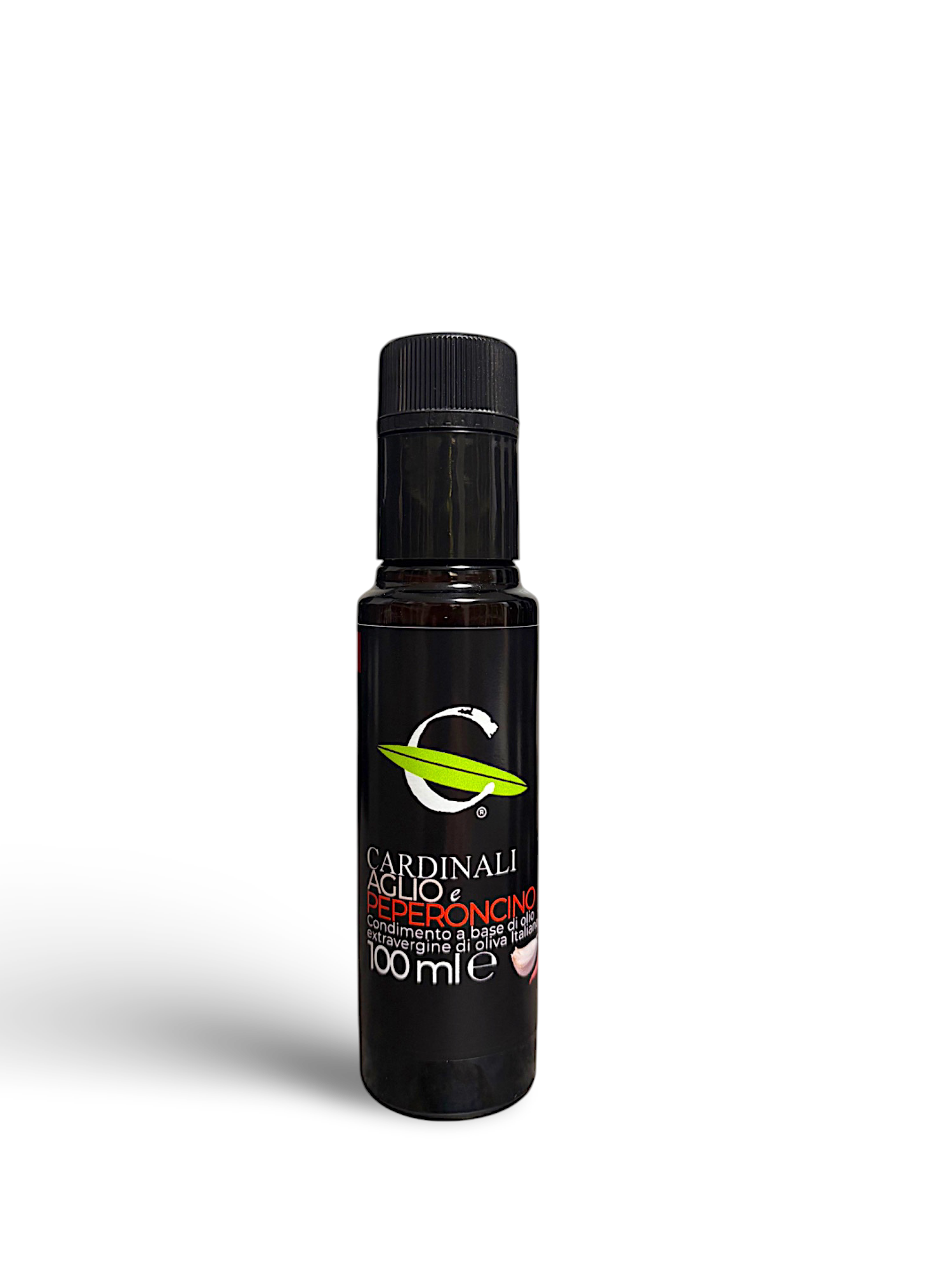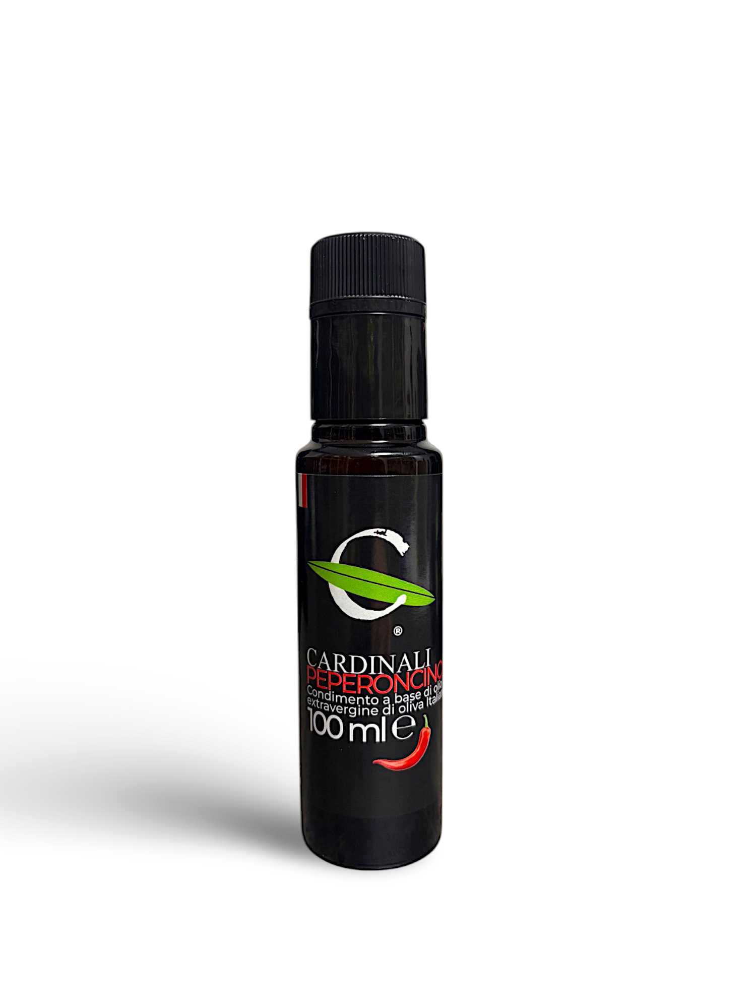 Condimento al Peperoncino a base di olio extravergine di oliva Italiano. Un gusto ricco e costante, adatto al classico spaghetto, sulla pizza e su tutte le pietanze che vorrete rendere più gustose.